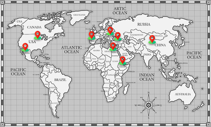 مکزیک، آمریکای مرکزی و جنوبی،چین، مصر، اتیوپی، ترکیه، اسپانیا